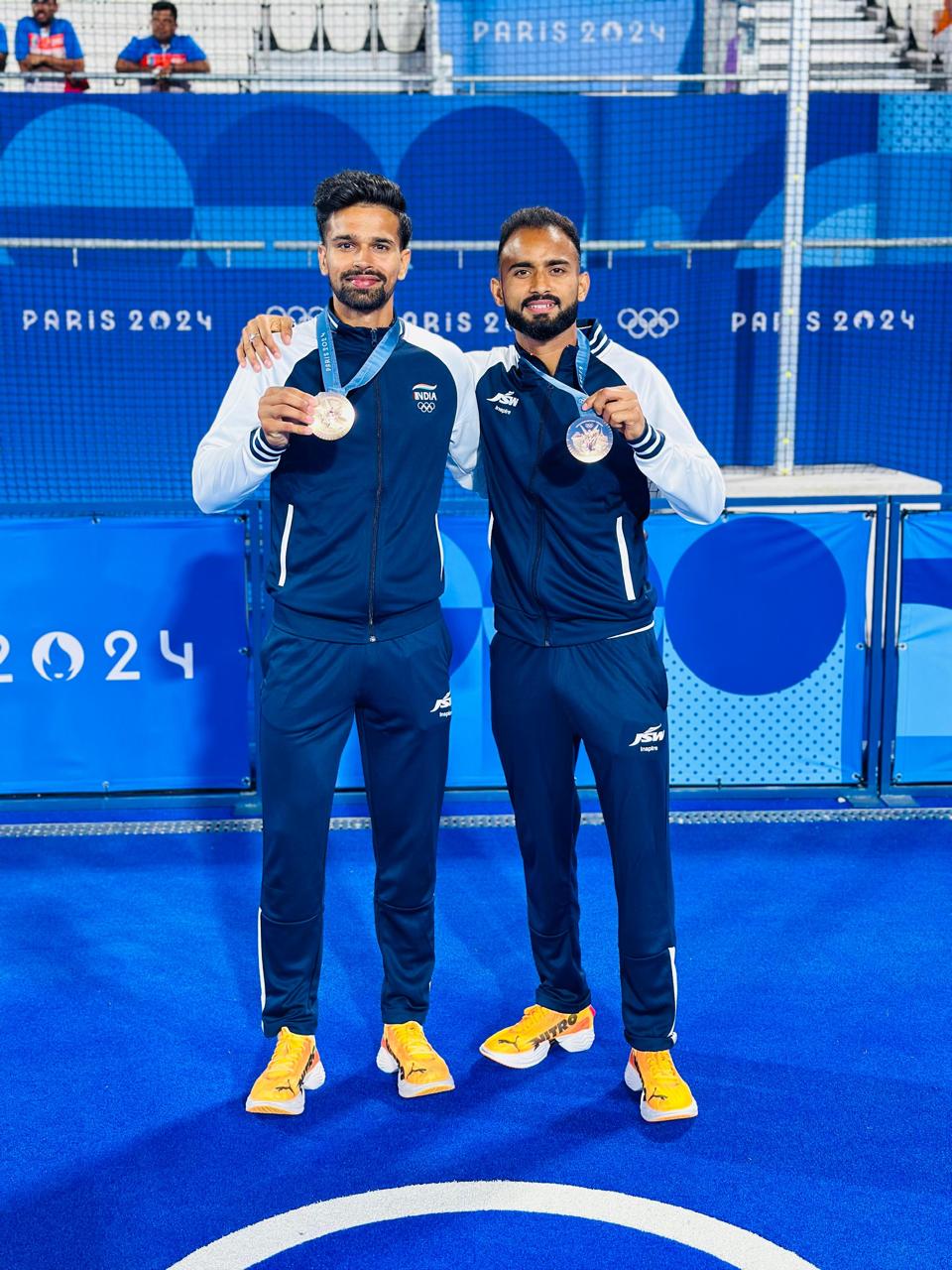 Shri Abhishek & Shri Sukhjeet Singh of PNB Hockey Team won Bronze medal in the Paris Olympics 2024.