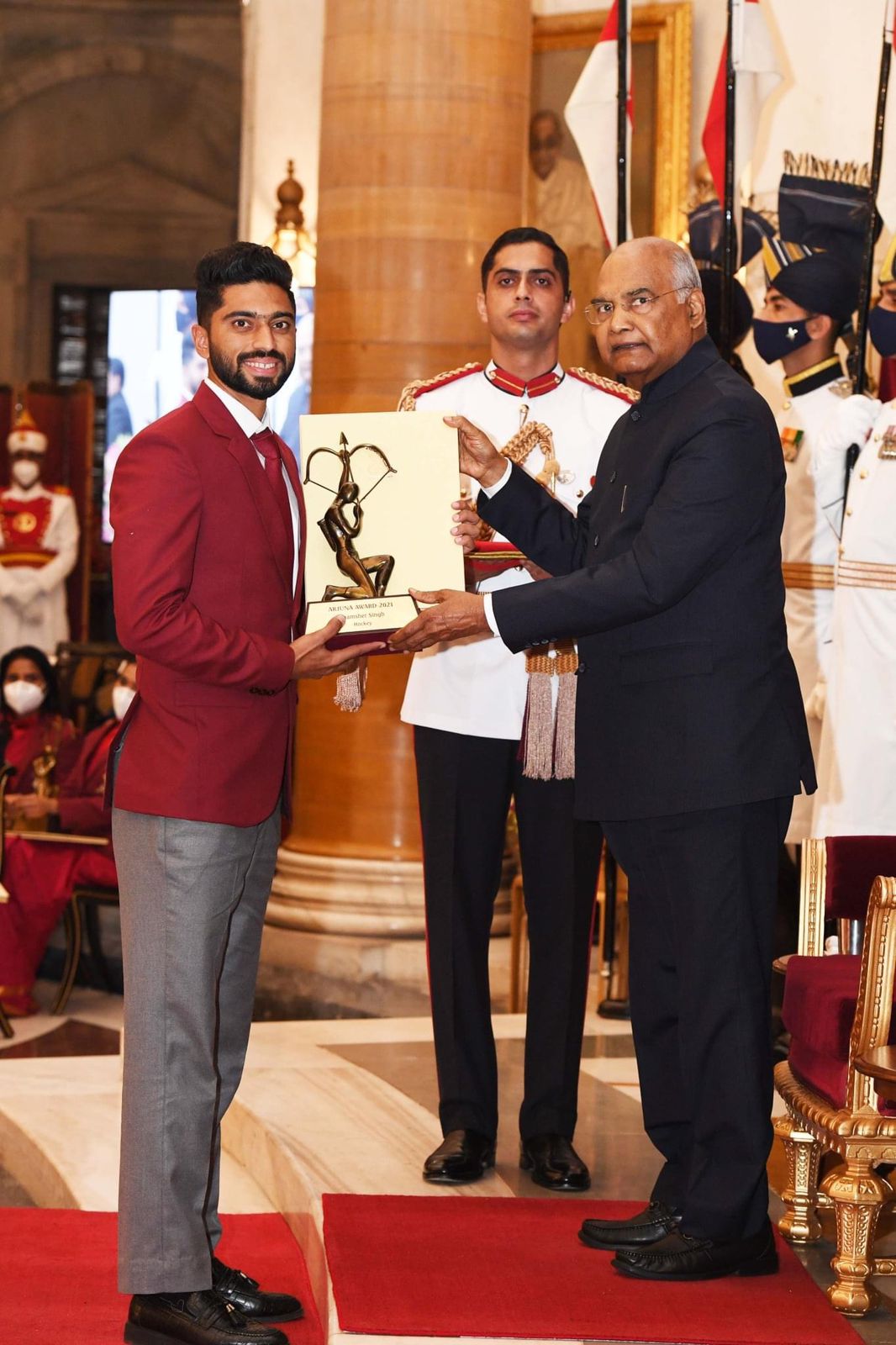 PNB Hockey Team member Olympian Sh. Shamsher Singh, receiving Arjuna Award 2021 from the President of India